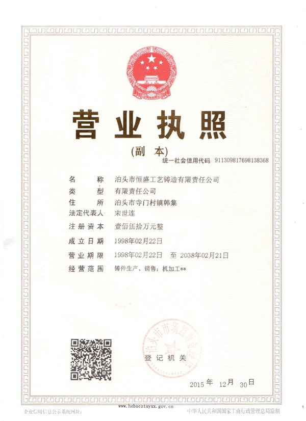 泊頭市恒盛工藝鑄造有限責任公司